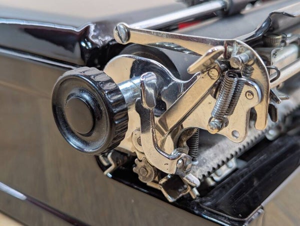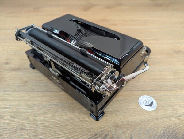 The machine has been heavily used in the past as can be seen by the case. Due to this, the vertical alignment of the type can be a bit wonky. This due to the fact that the typebars have a little play in the segment slots.