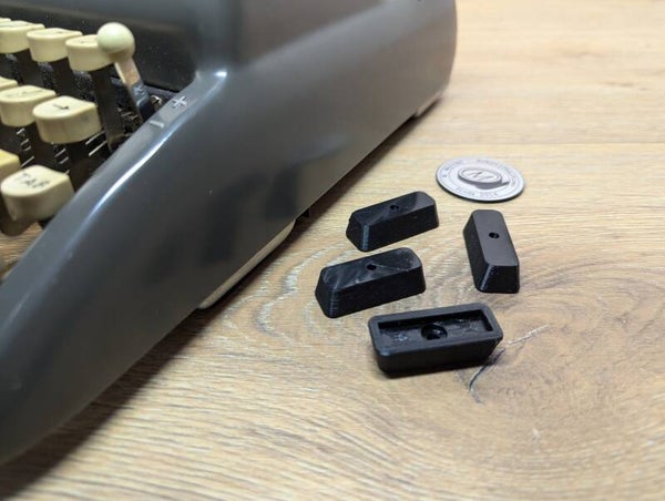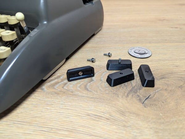 Note: I only sell the 4 typewriter feet. The hardware that the old feet are mounted with should be used again.