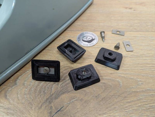 Note: I only sell the 4 typewriter feet. The hardware that the old feet are mounted with should be used again.