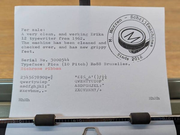 1962 Erika 12 Typewriter | Rare Ro 88 'Bruxelles' Typeface