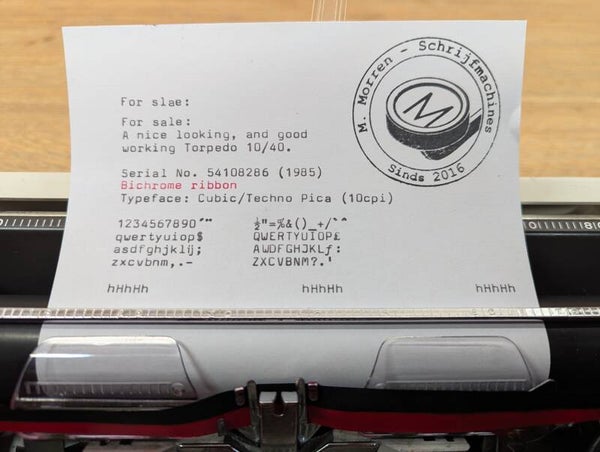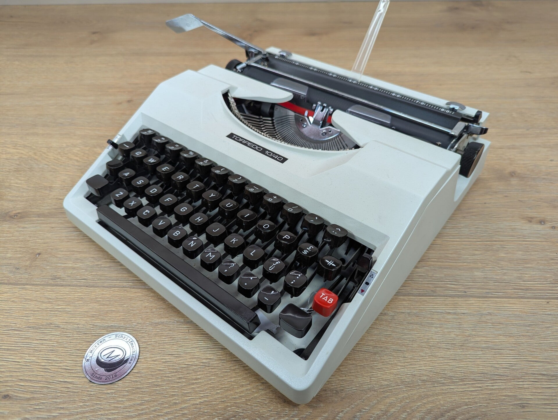 This lovely little Torpedo 10/40 is in great condition. the machine has been cleaned and adjusted by a typewriter mechanic who has worked in the business for over 50 years. The machine works great and comes with a case.